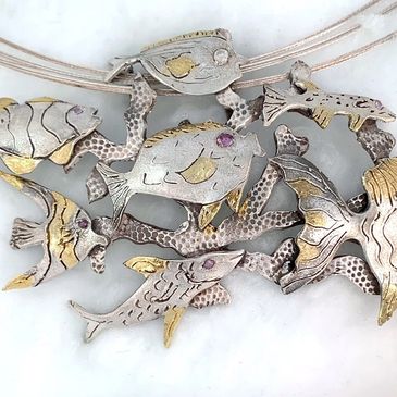 "Benjie The Bugus" was a featured in the All Florida Exhibit at the Martin Arts show in 2023. Benjie is silver with a dichroic glass center. It was an honor to be juried into this prestigious show.