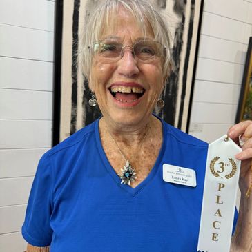 The Palm Room in Harbour Bay Plaza in Stuart, Florida changes their exhibit every two months. I am shown holding my third place award in May 2024. I frequently participate in their wonderful shows which feature art of many different mediums.